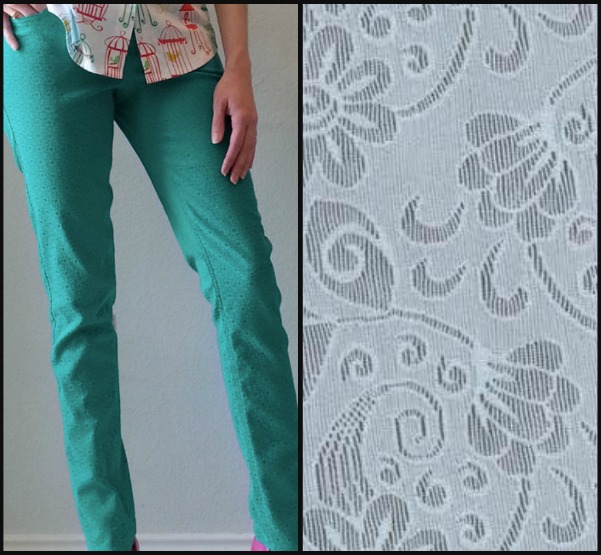 Jacquard Fabric Swatch and Brooke’s Fabulous Stretch Jacquard Trousers