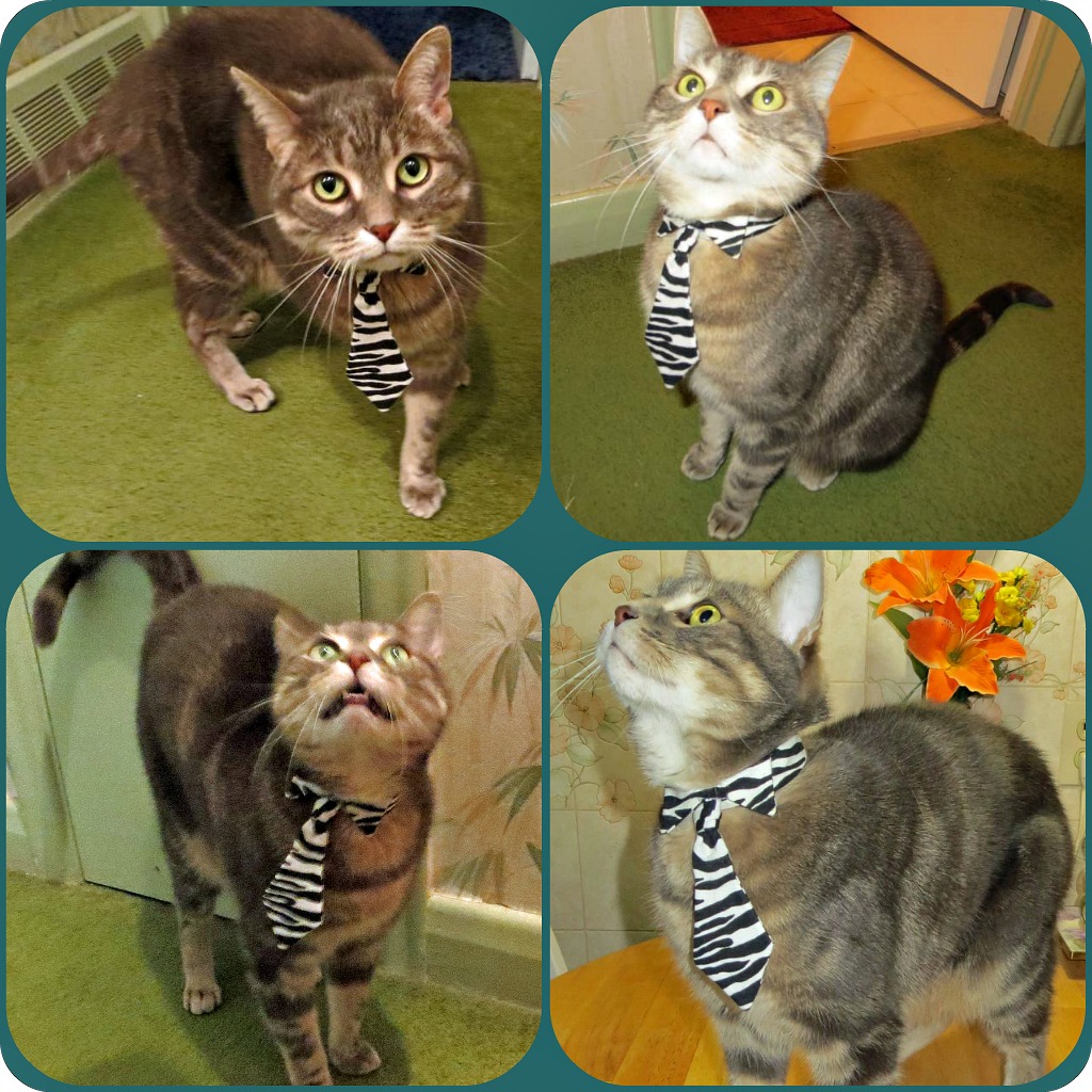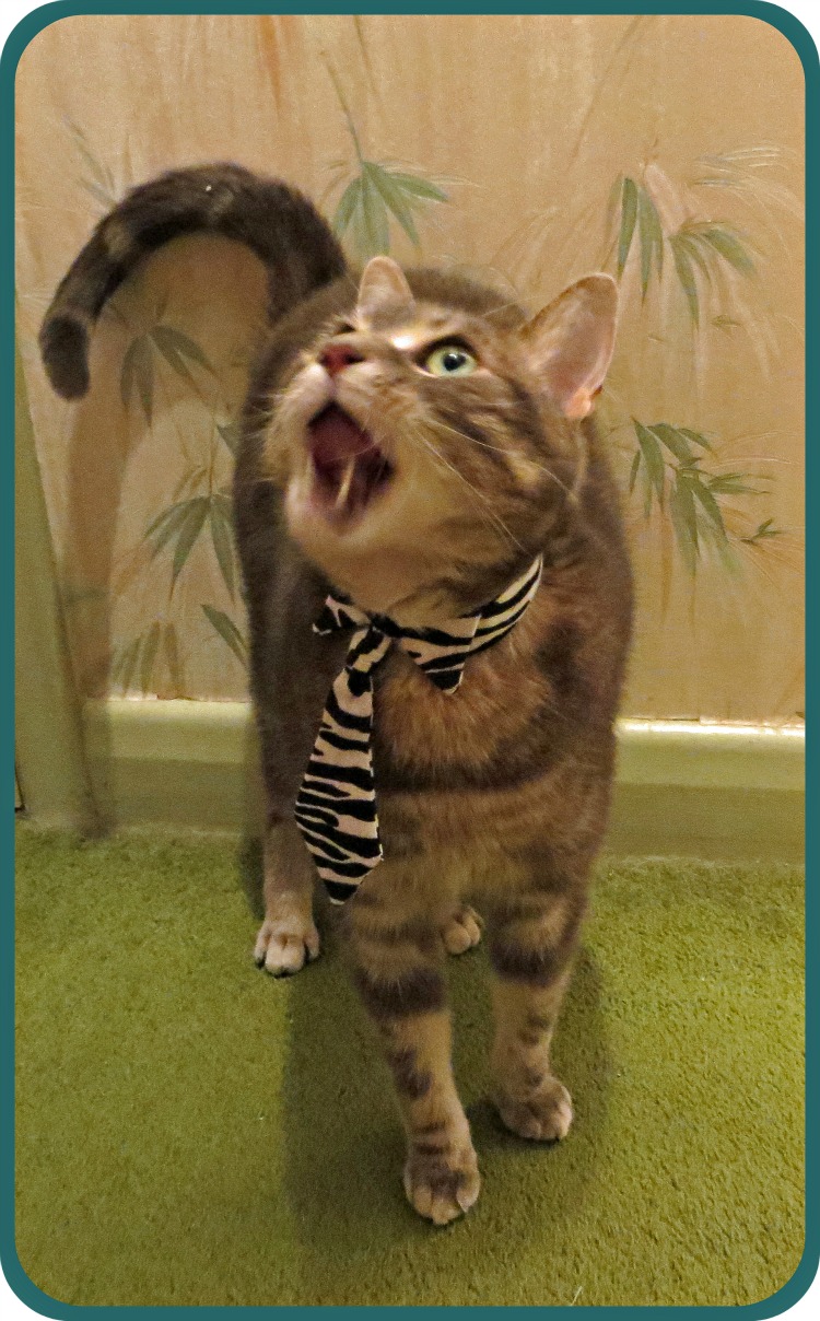 And, being the ever relevant cat that he is, Kitty opted to fashion his collar and tie out of zebra print since 2014 is Year of the Horse in the Chinese Zodiac.