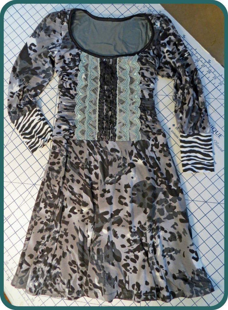 Anyhoo, despite this, I did add cuffs to the sleeves using a zebra print stretch knit that’s been in my stash for a while that I obtained from a sewing meet-up.