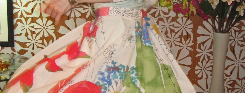 It was quite easy to make, (save for my brand new (to me) vintage overlocker eating my first skirt, both front and back pieces. I had to start all over again. And, the second skirt, the waistband was too big, so I had to make a new one.)